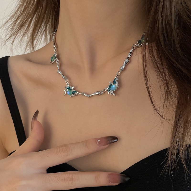 Product information:Color: irregular blue moonstone necklaceApplicable people: womenChain style: Regular chainMaterial: AlloyShape: WavePopular elements: Wings, folds, irregularStyle: sweet and cool