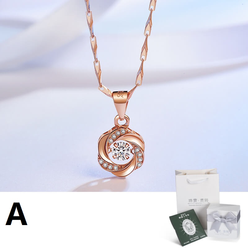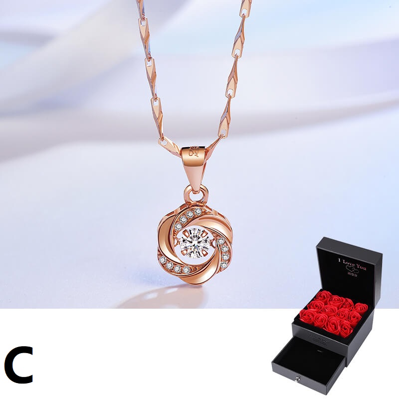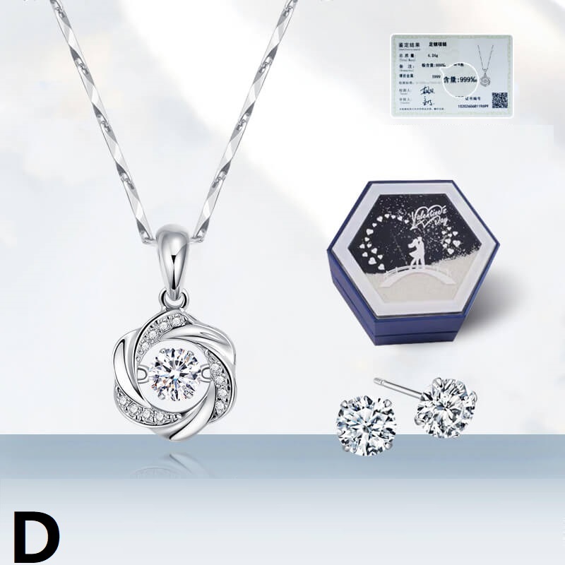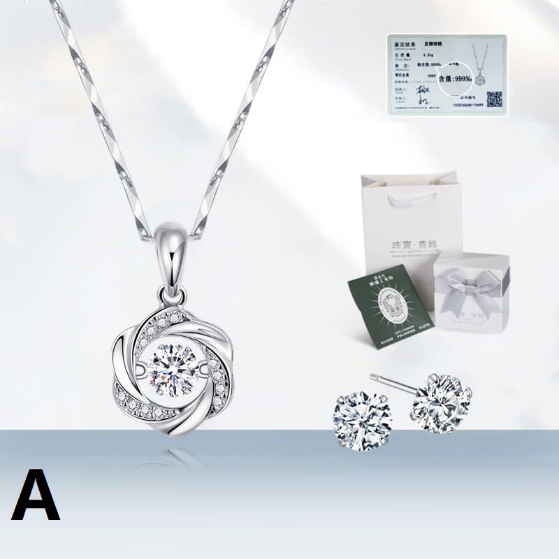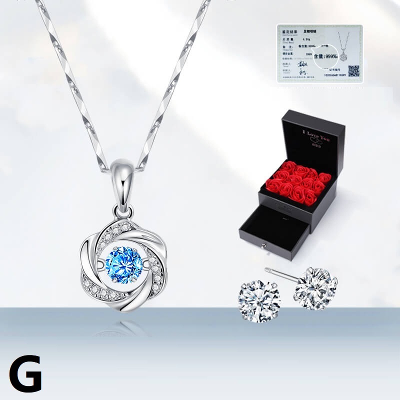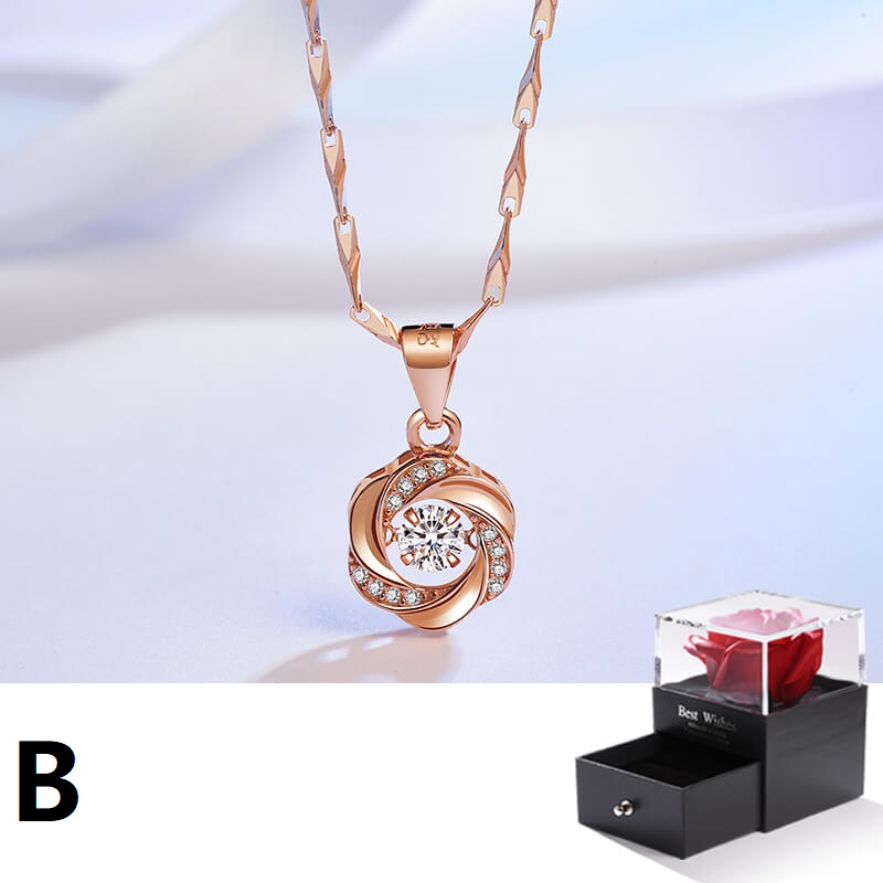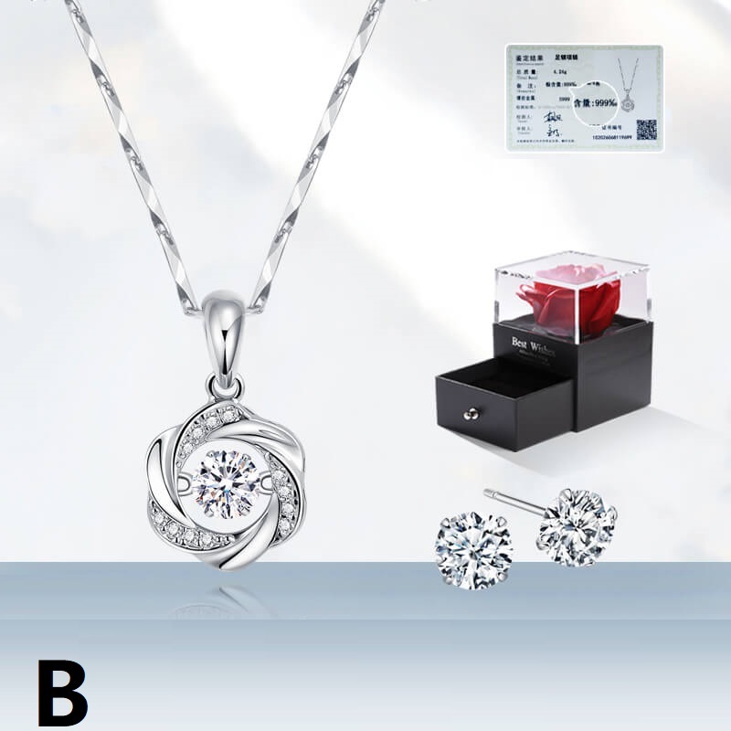 B: Necklace + Silver Stud Earrings + Crystal Rose Gift Box