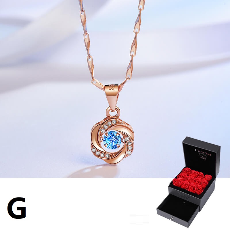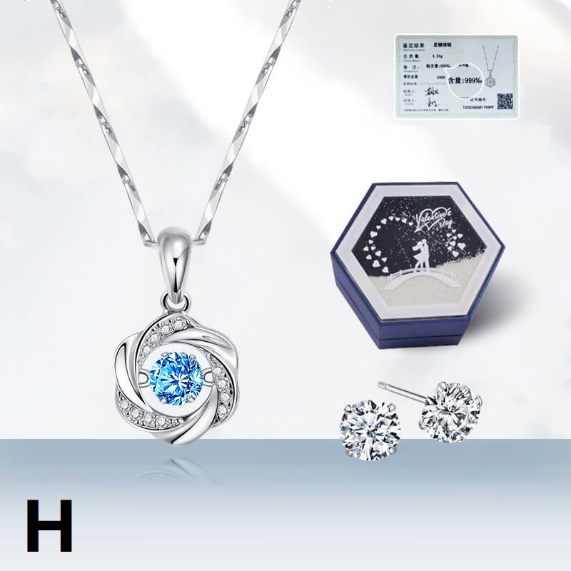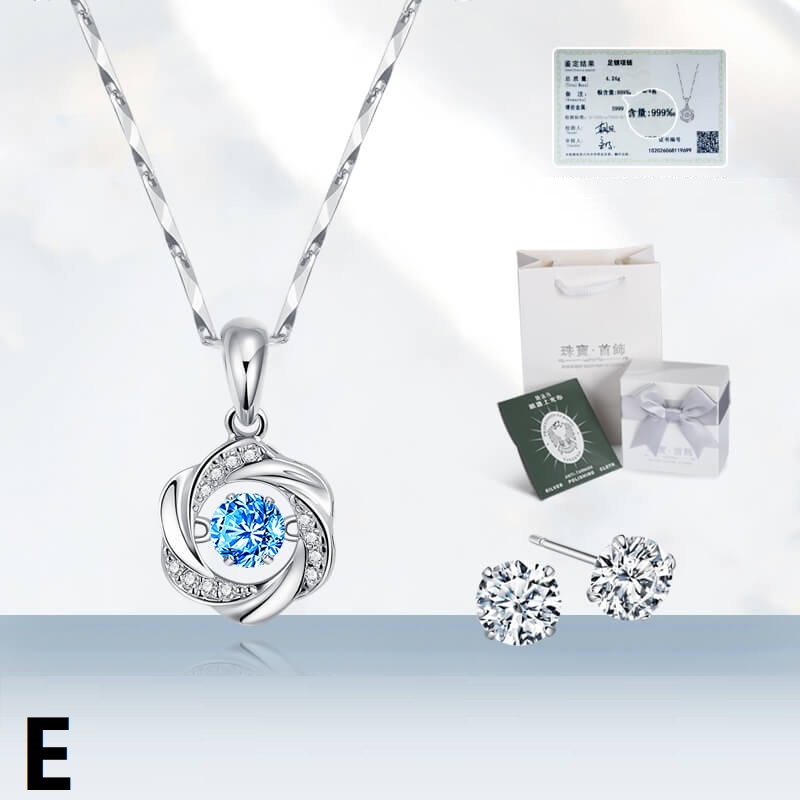 F: Necklace - Blue Zircon + Silver Stud Earrings + Crystal Rose Gift Box
