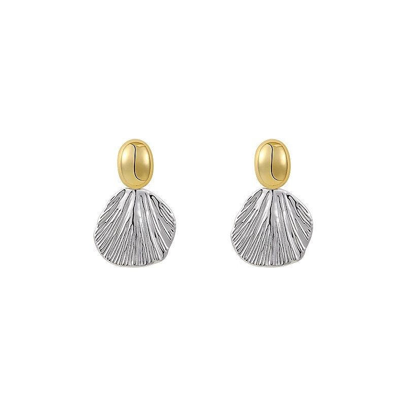 Scallop Elegance Retro Two-tone Fan Shaped Stud Earrings