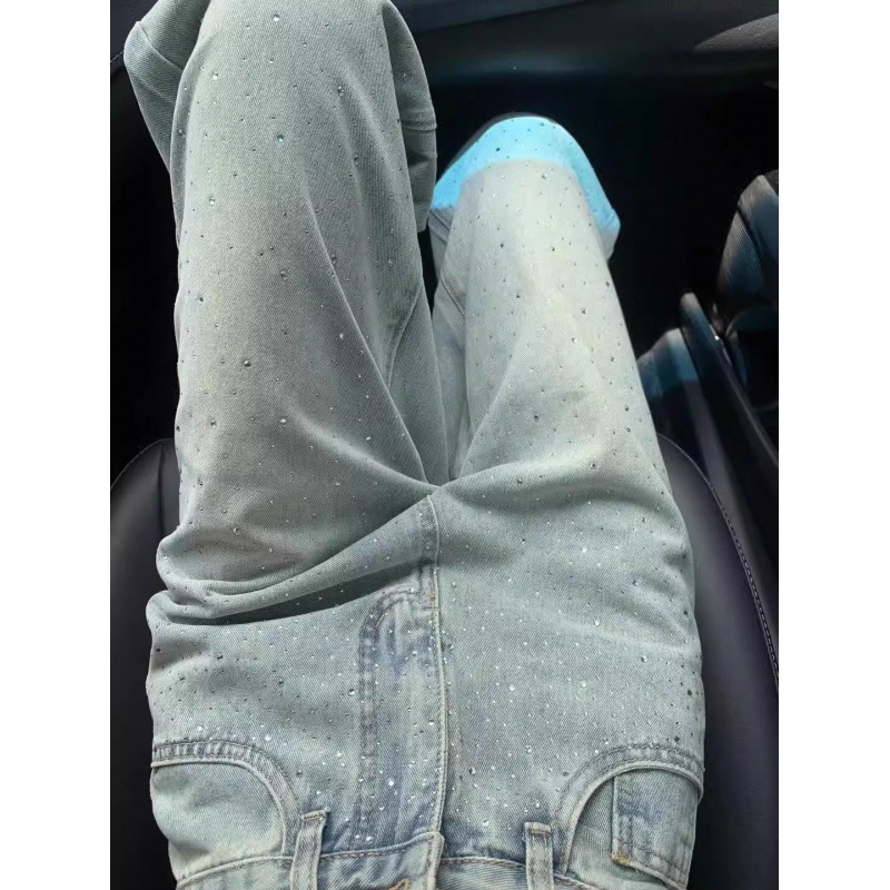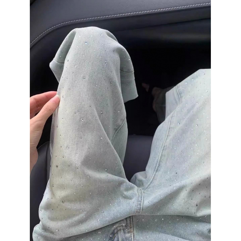Straight jeans for women, designer rhinestones, high waist, loose and slim, drapey, narrow version wide-leg pants
