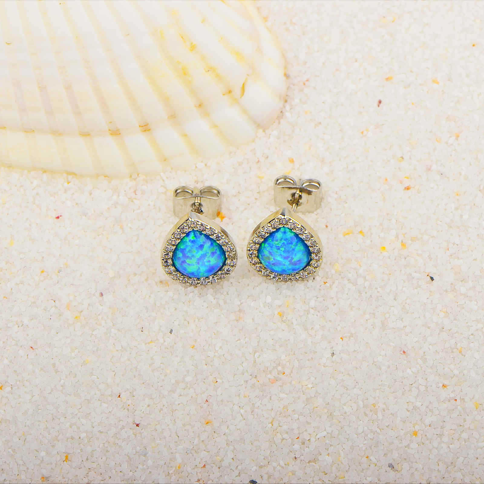 Women's Simple Drop Shape Blue Opal Stud Earrings