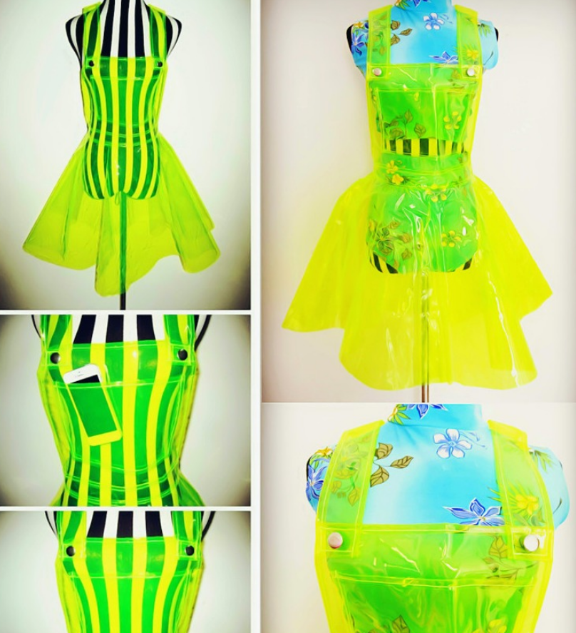 This sexy, colorful vinyl piece can be worn conservatively over a dress or bodysuit or let yourself go wild with little to nothing under. Either way, you're sure to feel like a hot, neon babe.