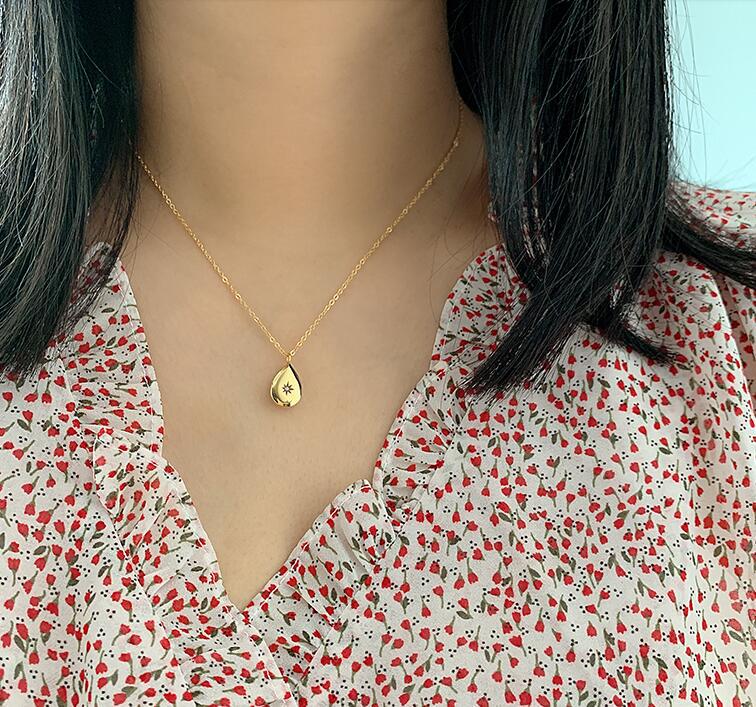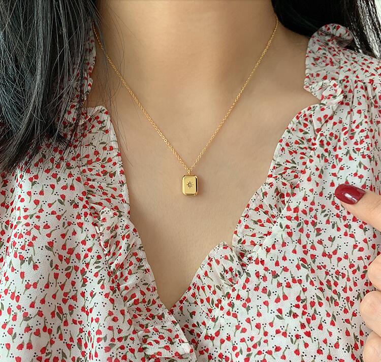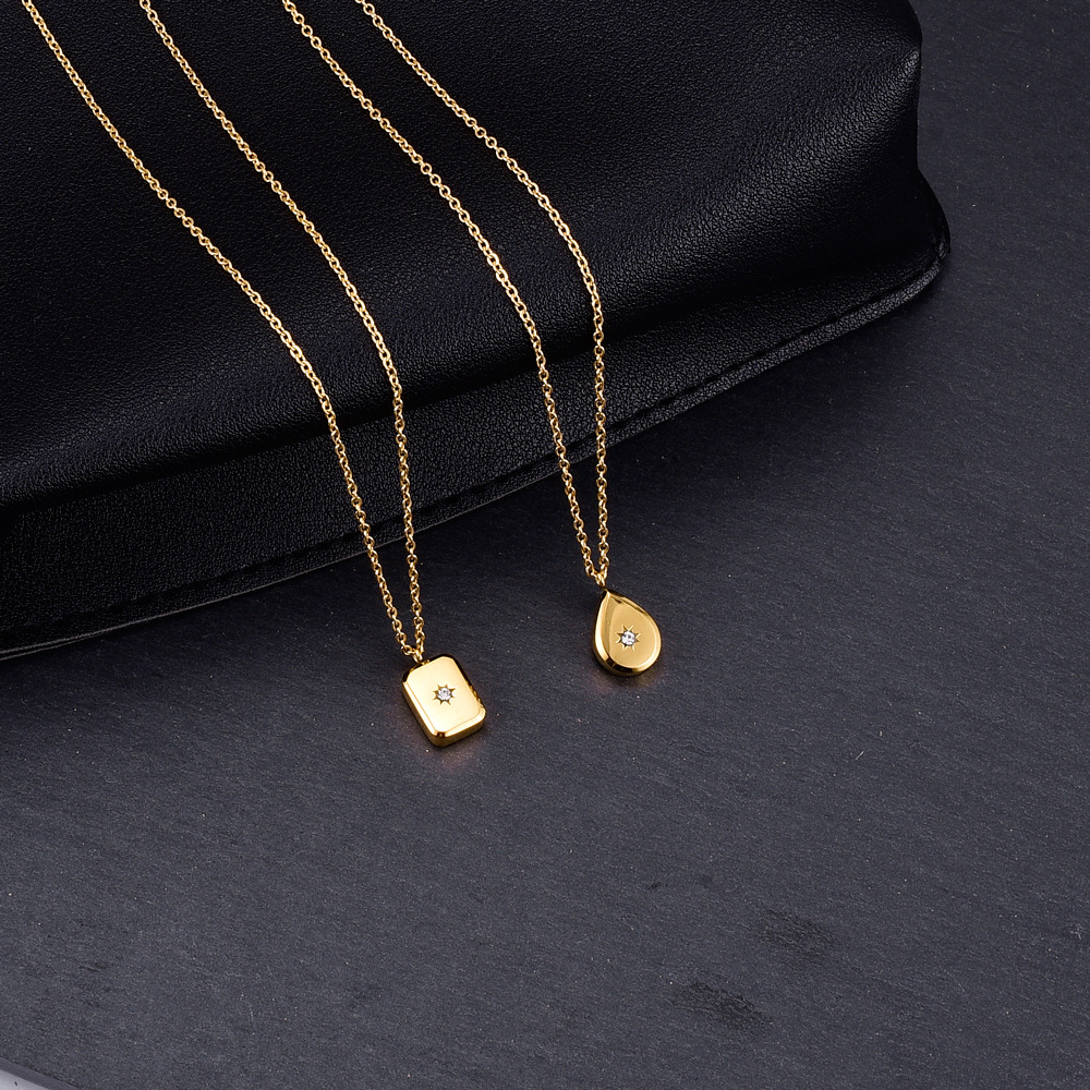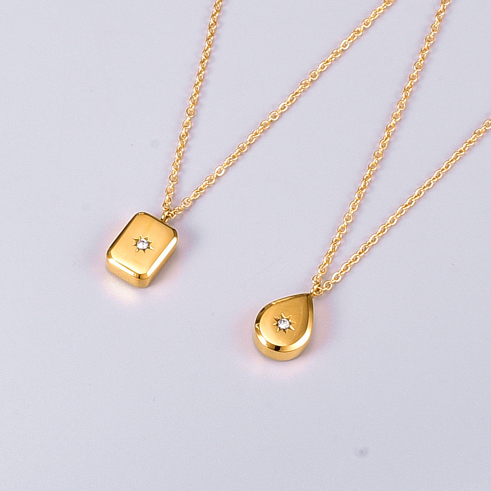 SIZE TABLE:Water drop pendant size 1.3X0.9 cmSquare pendant size 1.2X0.9cmChain length: 41+5 cm (clavicle chain)