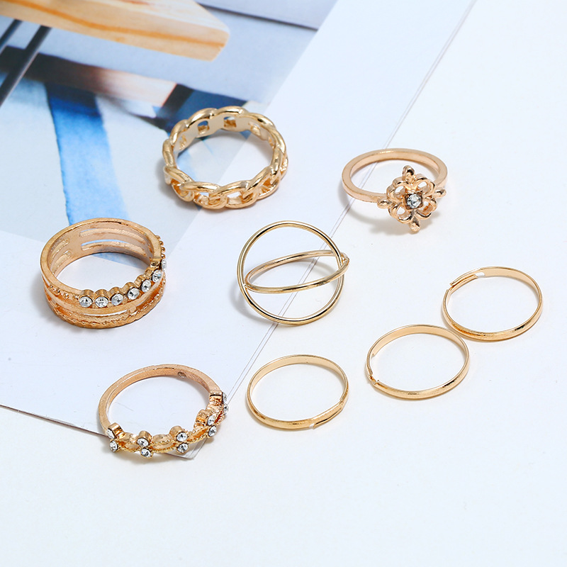 Product name: eight-piece diamond-encrusted hollow geometric combination set