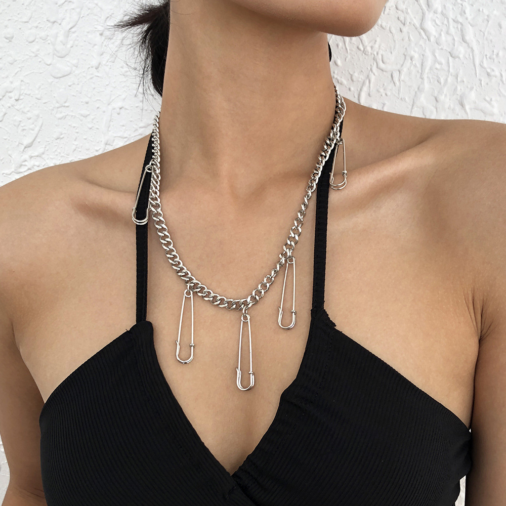Retro Hip Hop Exaggerated Simple Geometric Necklace Pin Personality Creative Clavicle Chain