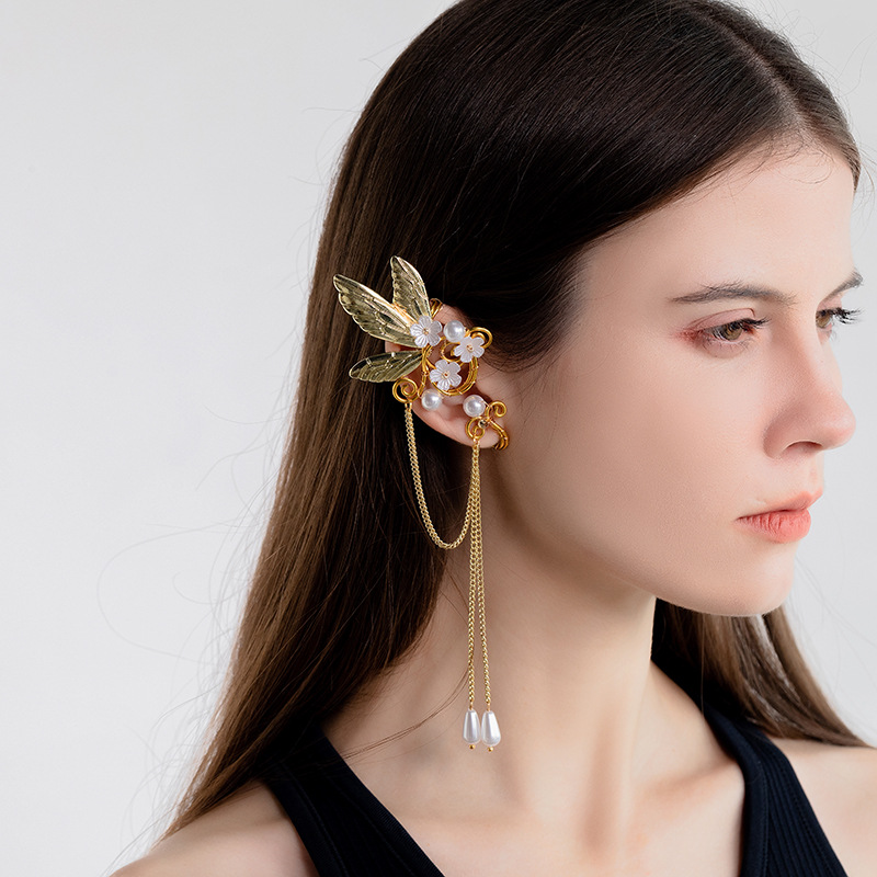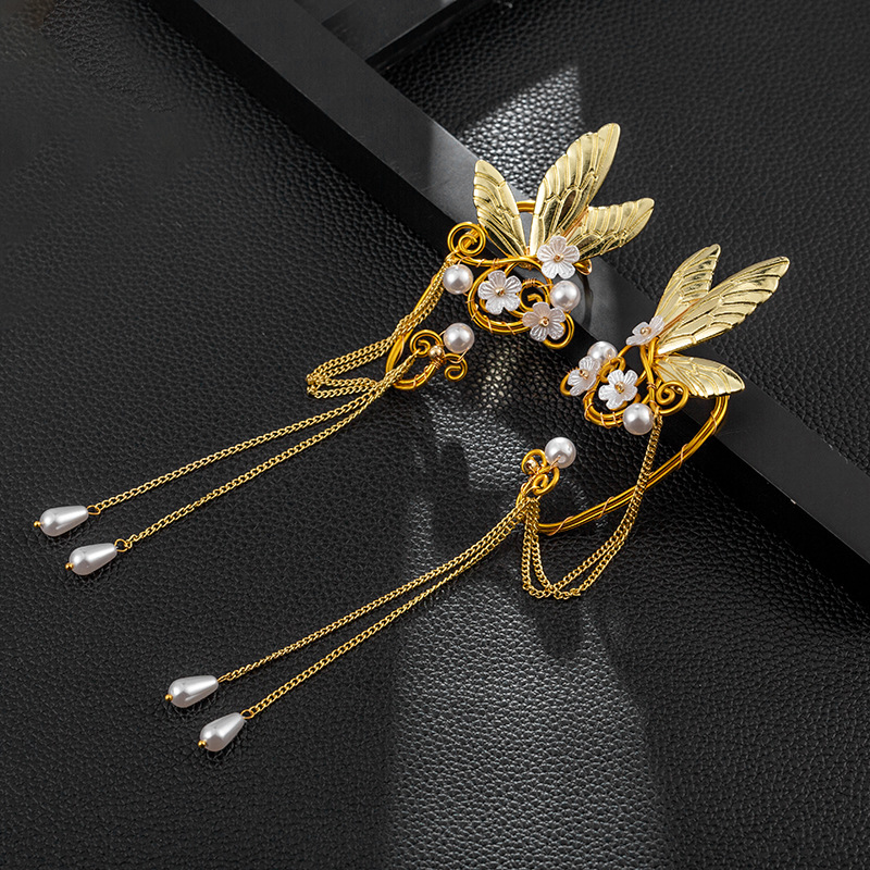 Color: big wings silver tassel ear hanging left ear (S083), big wings silver tassel ear hanging right ear (S084), big wings silver tassel ear hanging pairs (S083 S084), large wing gold tassel ear hanging left ear (S085), large wing gold tassel ear hanging right ear (S086), large wing gold tassel ear hanging pairs (S085 S086), large wing rose gold tassel ear hanging left ear (S087), large wing rose gold tassel ear hanging right ear (S088)
