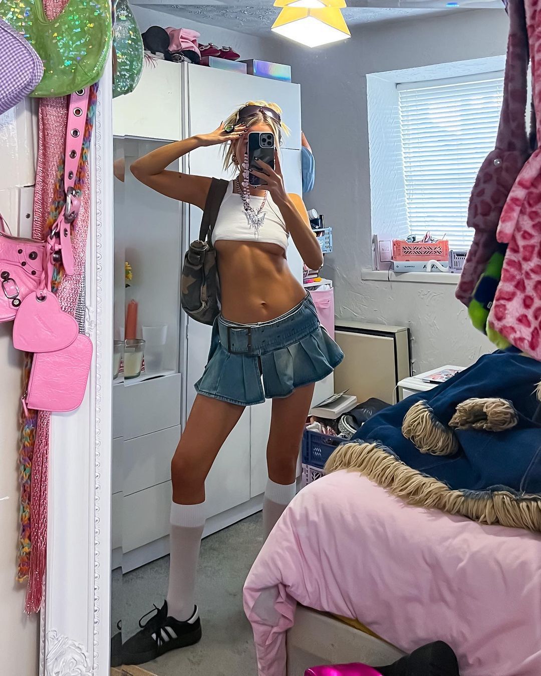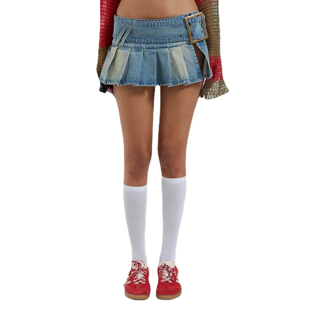 Product information: Fabric name: denim Skirt type: pleated skirt Color: blue Main fabric composition: Cotton Size: S,M,L Style type: street fashion Popular elements: Folding Style: Denim style Craft: collage/stitching