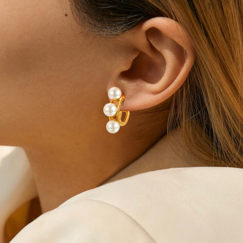 Product information:Treatment Process: Pearl Inlay Color: A002 C- shaped 3 pearls Applicable population: Female Material: Stainless steel Shape: U-shaped, geometric Popular elements: Pearl
