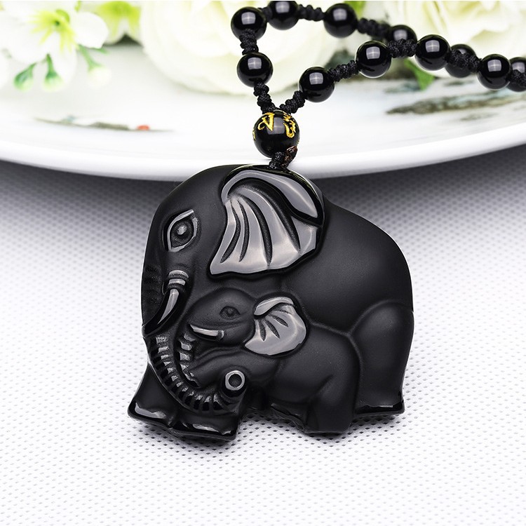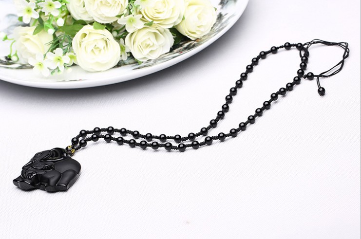 Material: Obsidian, otherCraft: CarvingStyle: Elephant Nude Pendant + Stretch Bead Chain