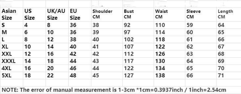 1. Asian sizes are 1 to 2 sizes smaller than European and American people. Choose the larger size if your size between two sizes. Please allow 2-3cm differences due to manual measurement.