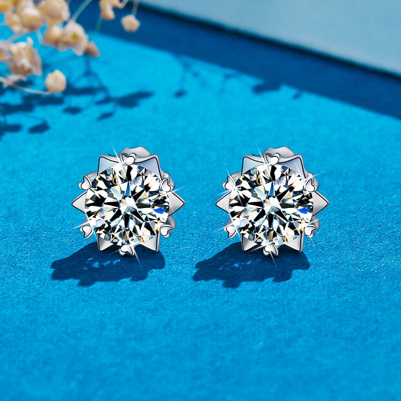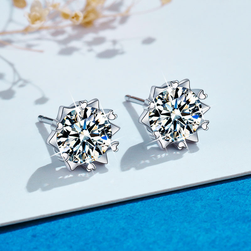 Material: SilverTreatment process: electroplatingType: Ear StudStyle: WomenCrystal type: white crystalInlay material: pure silver inlaid GemstoneColor: mosang stone
