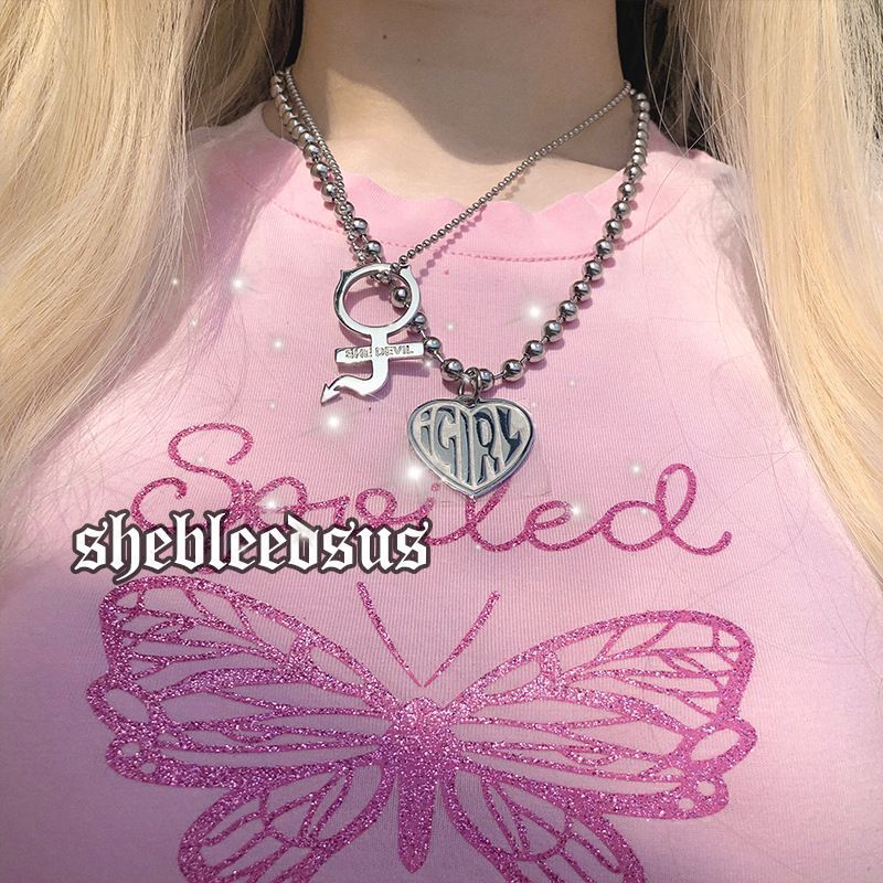 Stainless Steel Female Symbol Girls Crush Choker Heart Pendant Necklace Women Unif Heavy Gothic Streetwear Jewelry