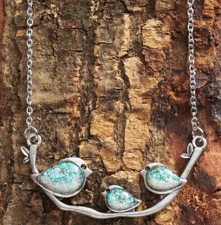 Retro Bird Sparrow Sky Blue Sticker Necklace Simple Stylish Pendant