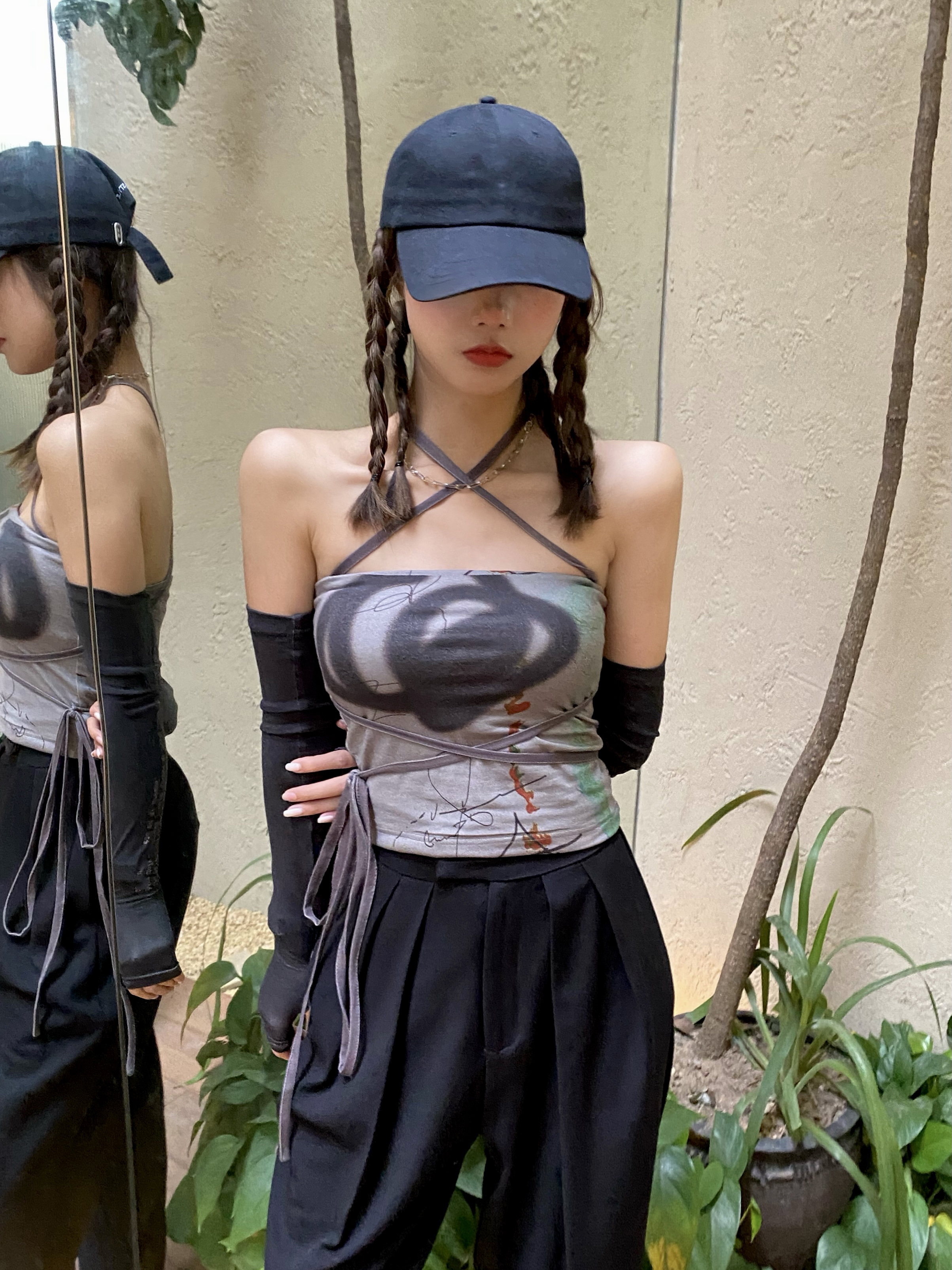 Popular elements: printed straps halter