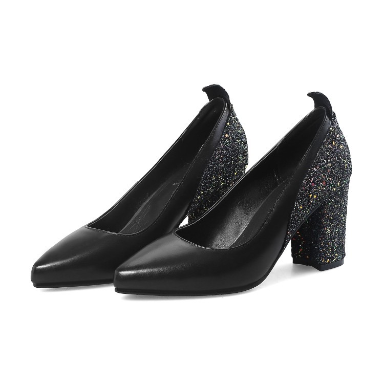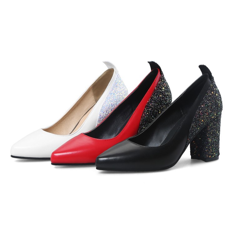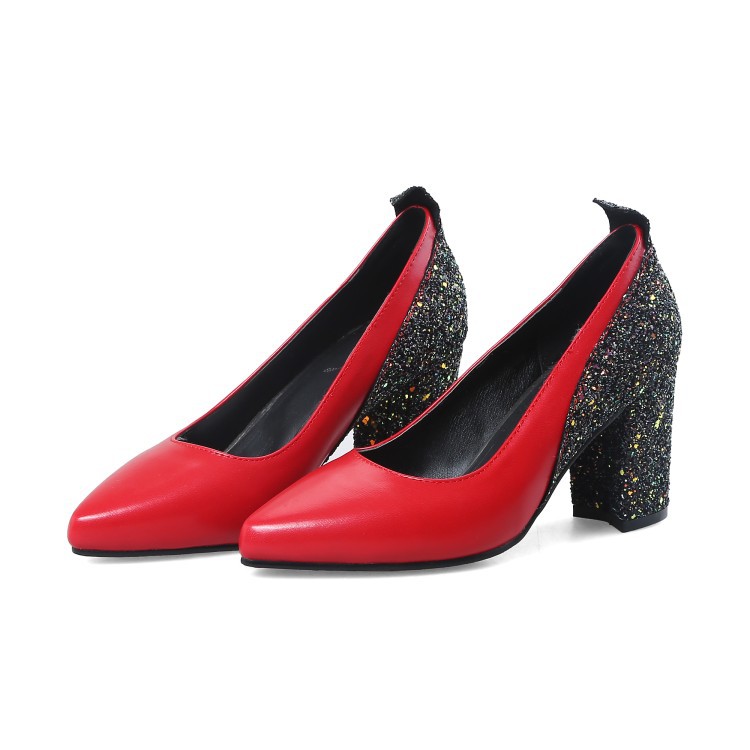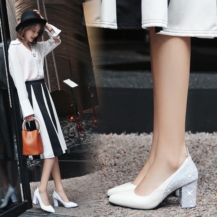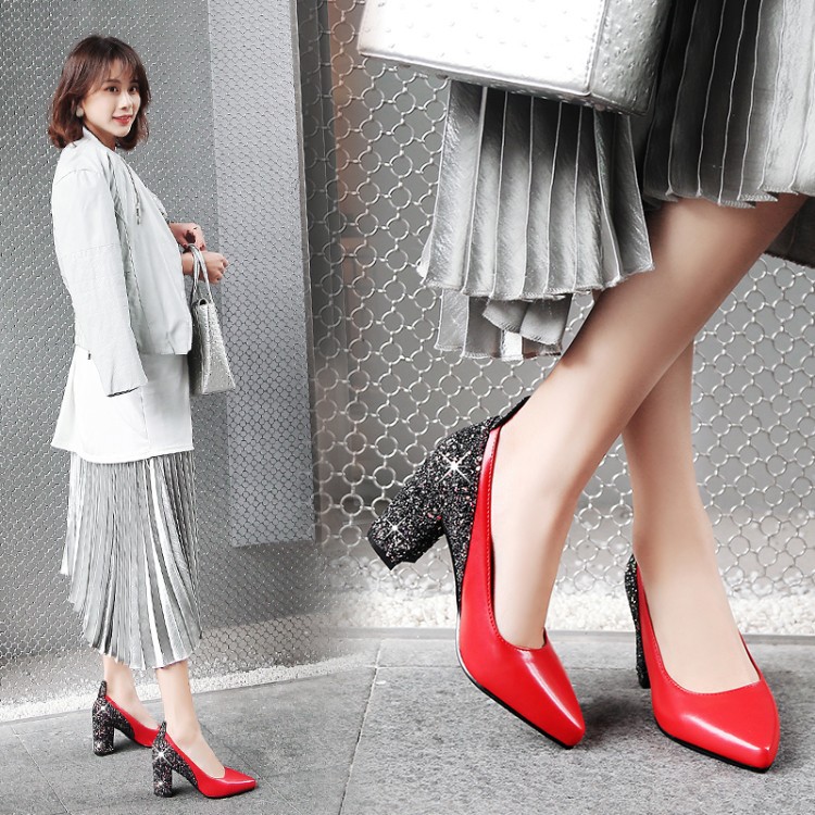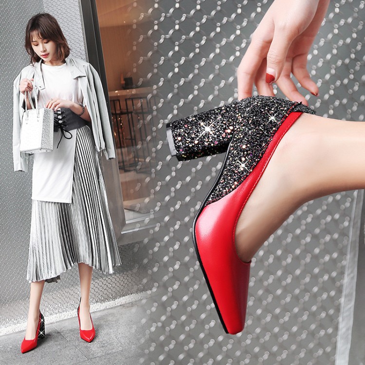 Popular elements: sequins, shallow mouth, thick heel