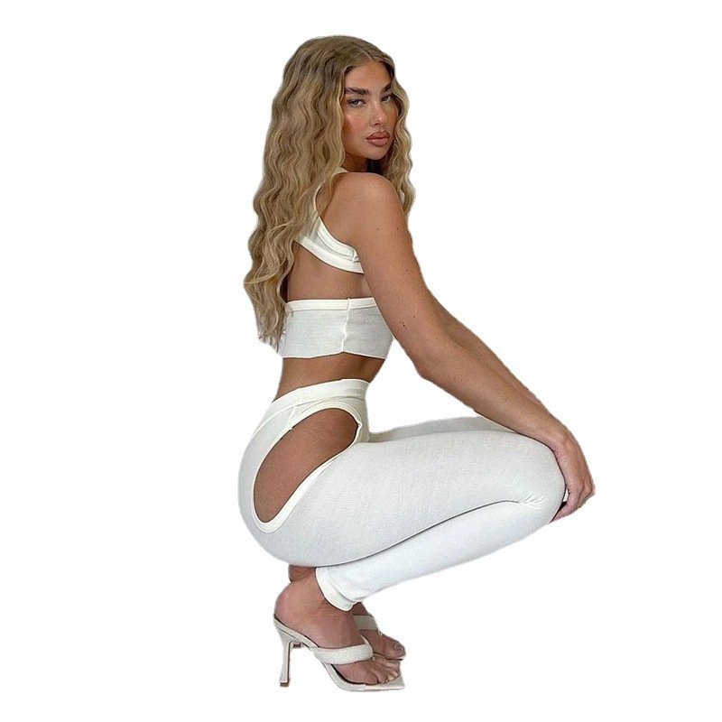 Style: sportsPattern: plainStyle: two piece setPopular elements: hollow outFabric name: milk silkMain fabric composition: polyester fiberLining Composition: SpandexColor: WhiteSize: S, M, L