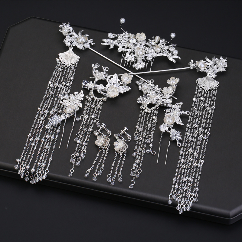 Color Classification: Silver Butterfly Full Set (Ear Clip Style Silver Butterfly Full Set (Ear Hook Style), Golden Butterfly Full Set (Ear Clip Style), Golden Butterfly Full Set (Ear Hook Style) Hairpin Pair + Hair Comb + Earring Clip Hairpin A pair + hair comb + earring hairpin pair + hair comb + earring clip hairpin pair + hair comb + earrings hairpin comb + hairpin pair