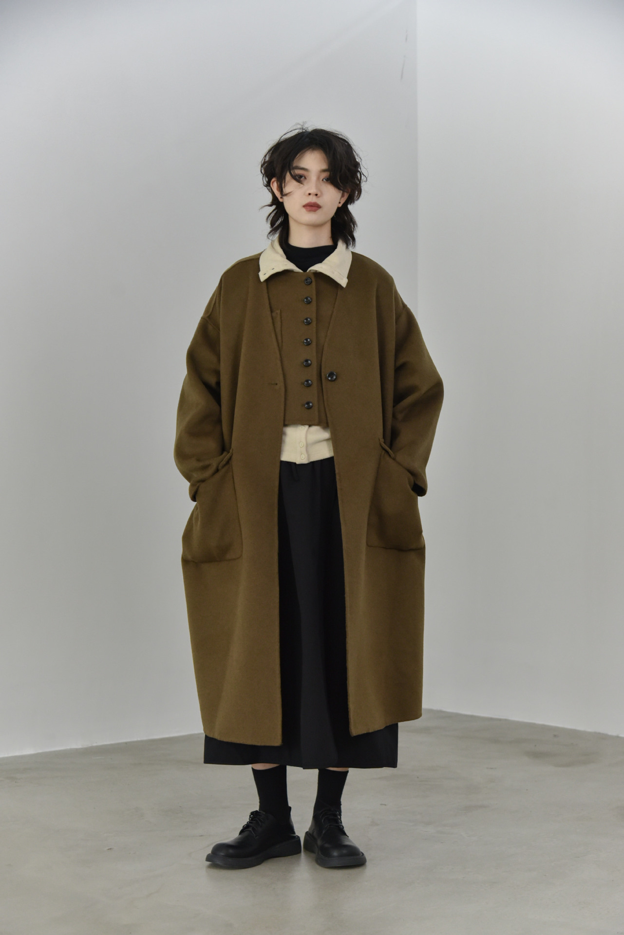 Product information: Color: black, light khaki, brown camel Size: free size Style type: temperament commute Popular elements: Pocket Main fabric composition: Wool Style: British style Craft: collage/stitching