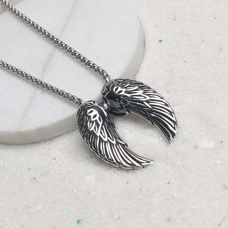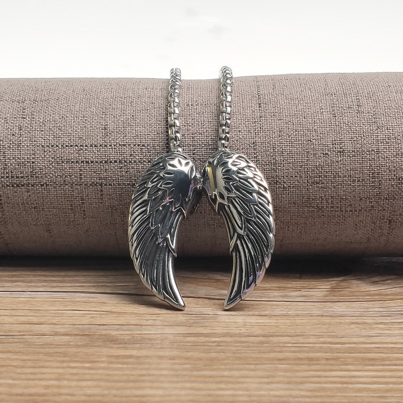 Product information:Material: Titanium steelStyle: Japanese and Korean styleStyle: UnisexStyle: Angel wingsTreatment process: PolishingColor: Single pendant, 60CM chain, 70CM chain, 80CM chain