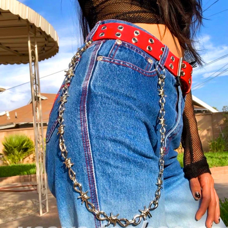 Color: [Alloy Style] Thorns Clavicle Necklace [9 Sections-Chain Length About 48cm], [Alloy Style] Thorns Variety Necklace [12 Sections-Chain Length About 63cm], [Alloy Style] Thorns Bracelet [4 Section Chain Length 23cm 】,【Single】Thorn earrings【Titanium steel earrings】,A1:【Classic】Thorn trousers chain [13 sections +2 buckle-chain length about 76.5cm],A2: [Individual models] Thorn trousers chain [11 sections +1 Clamp buckle + key chain] chain length about 66cm]