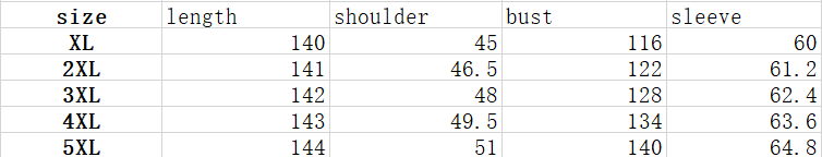 Size: XL, 2XL, 3XL, 4XL, 5XL