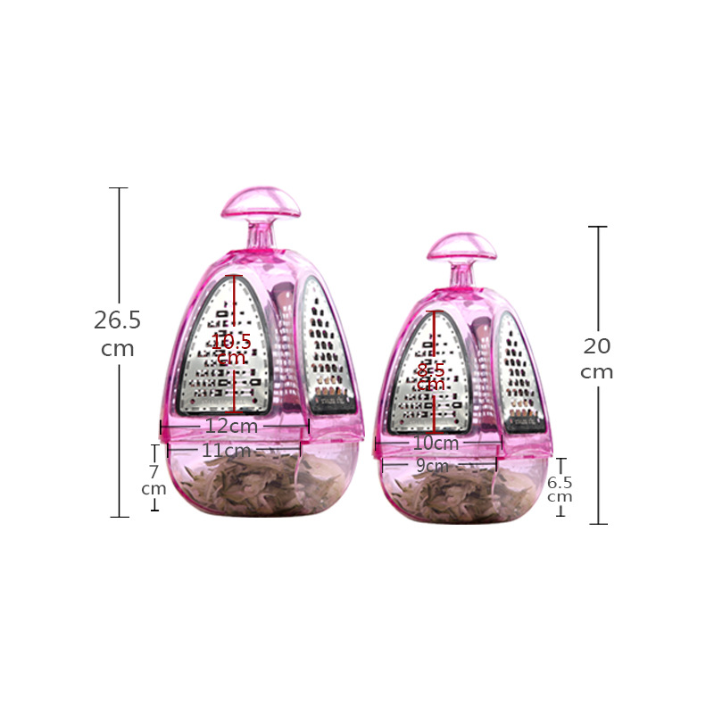 Large grater: plastic basin size: 11*7cm grater size: 12*10.5cm total height: 26.5cm