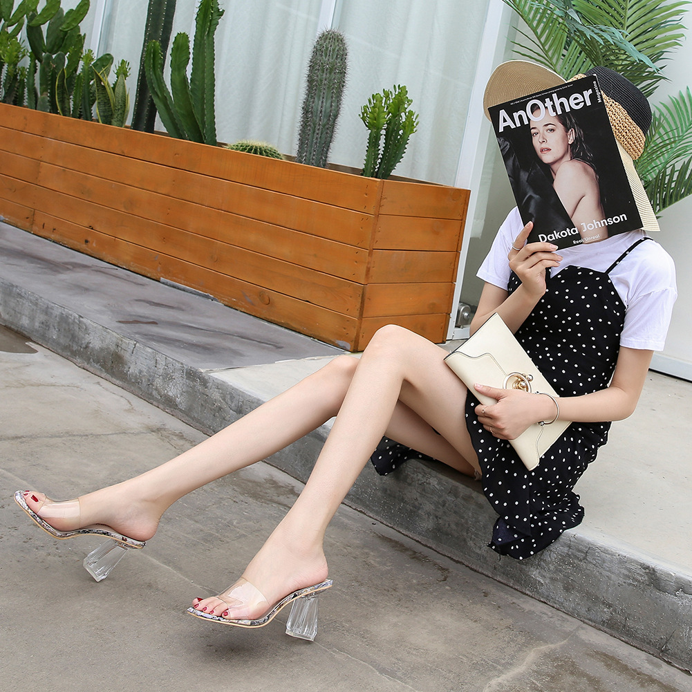 Toe shape: fish mouthHeel height: high heel (6-8CM)Heel shape: thick heelPopular elements: flowers, hollow, shallow mouth, thick heel