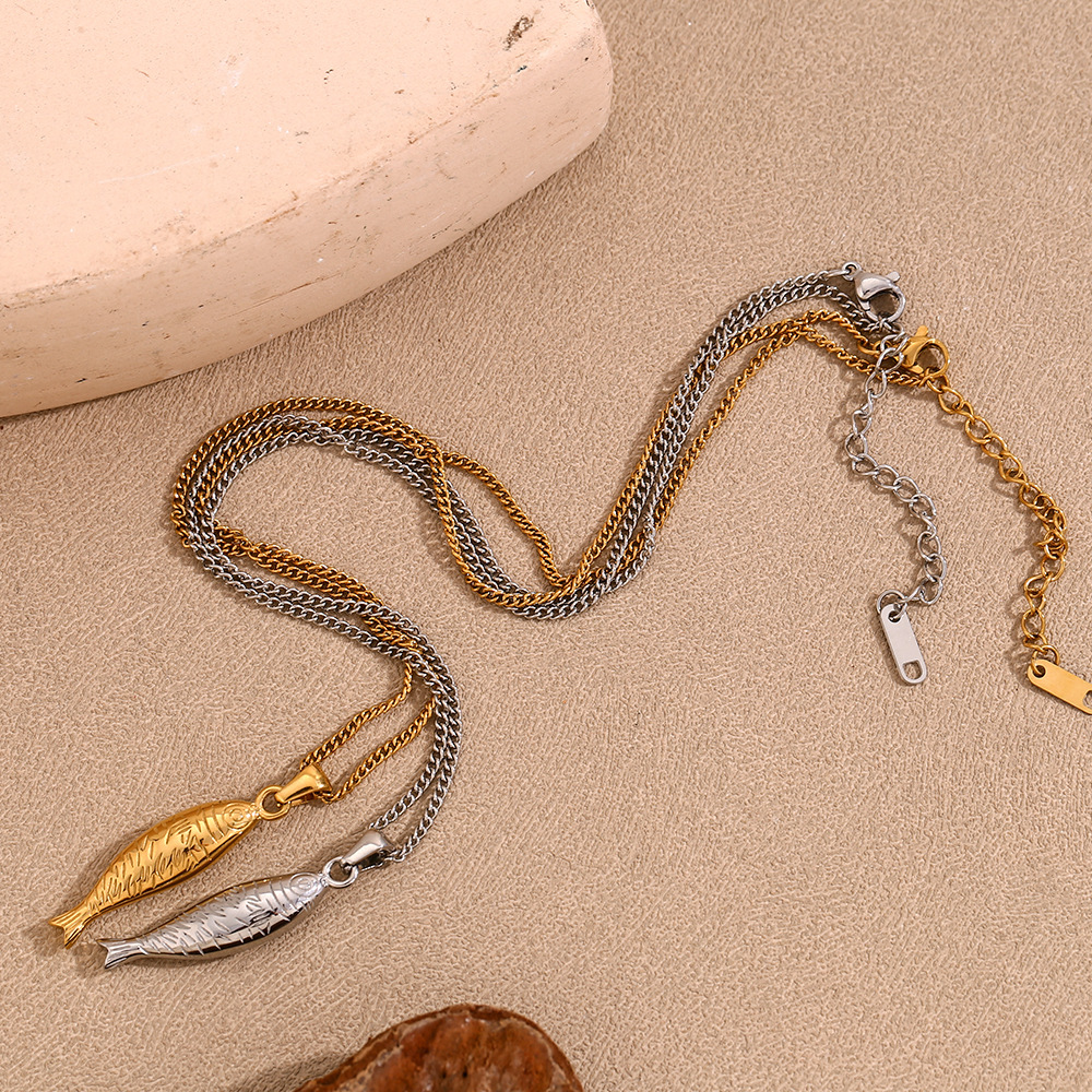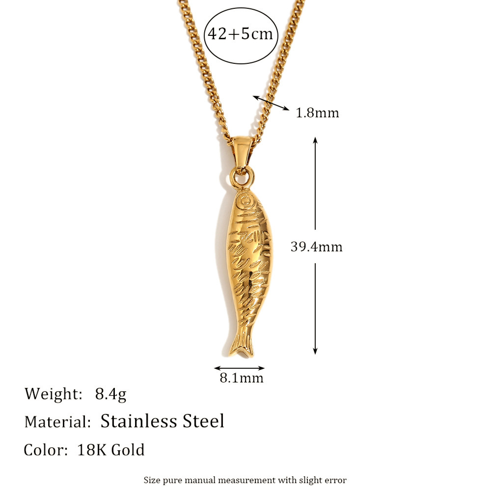 Product information:Process: Electroplating Color: Salmon necklace gold, salmon necklace steel Pendant: titanium steel Chain style: Regular chain Material: Stainless steel Modeling: Animals