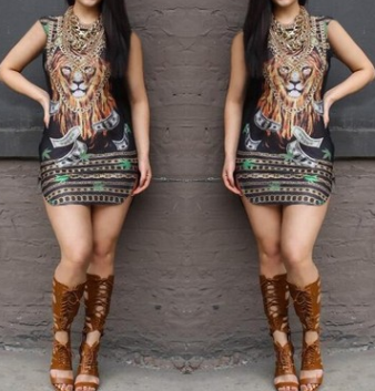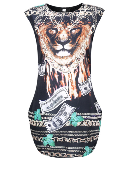 Printed short-sleeved nightclub dress