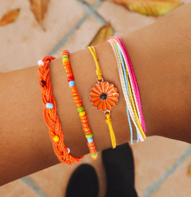4Pcs Set Bohemian Colored Rope Flower Pendant Bracelet