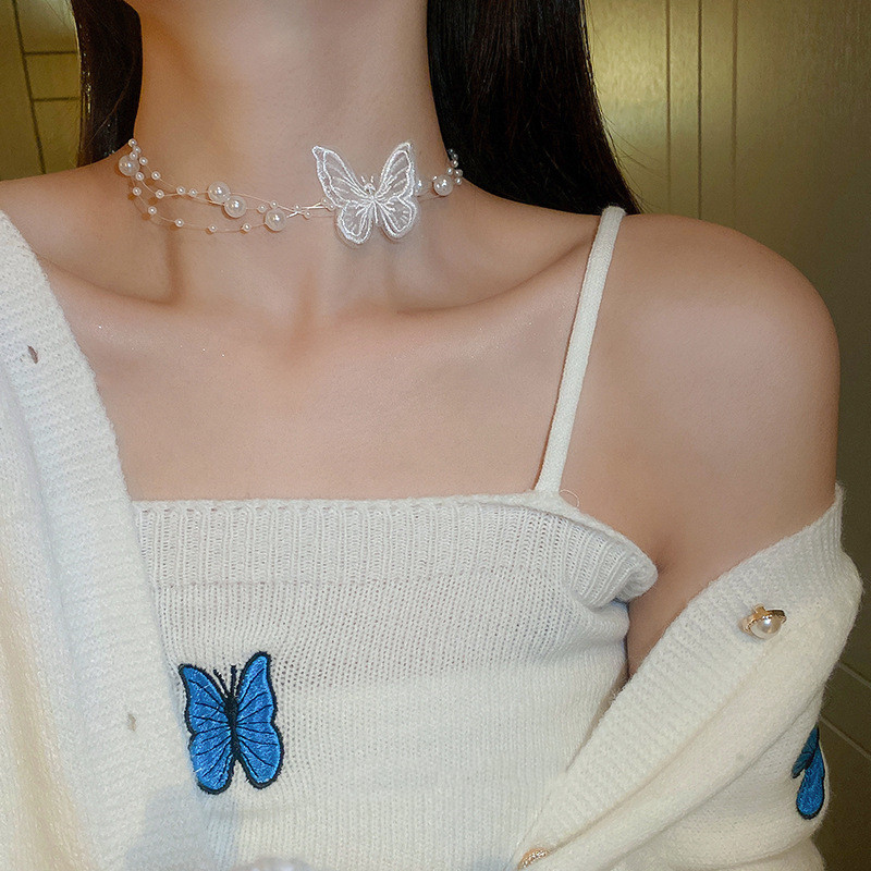 Style: naturalMaterial: PearlType: necklaceStyle: Women'sShape: butterflyColor: White-ButterflyPopular elements: pearls, butterfliesSize:Length38cm