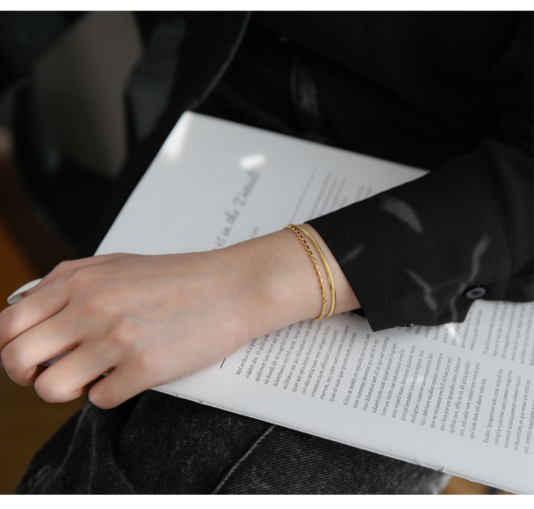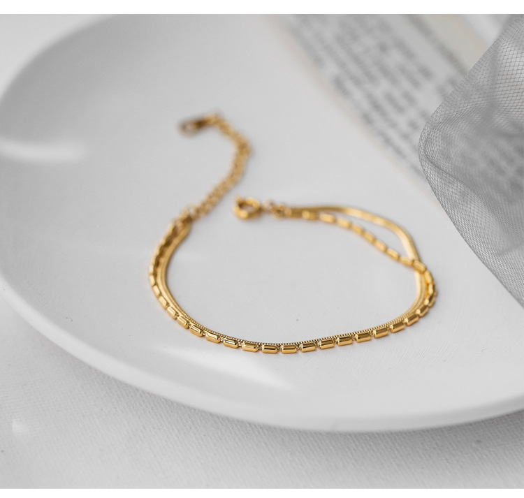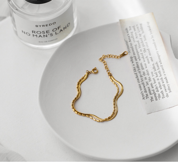 Cold Wind Titanium Steel 18K Gold Plated Double Snake Bone Bead Chain