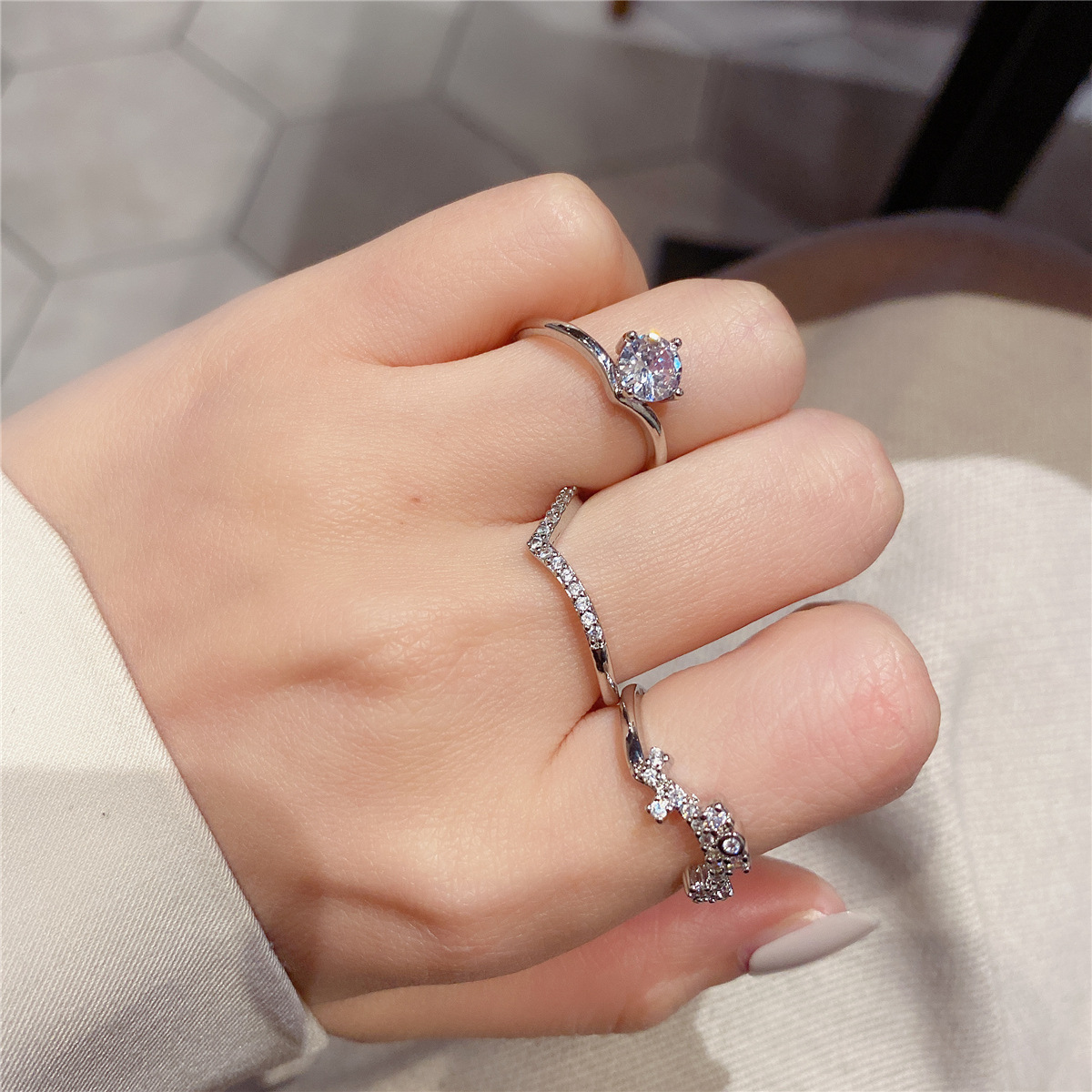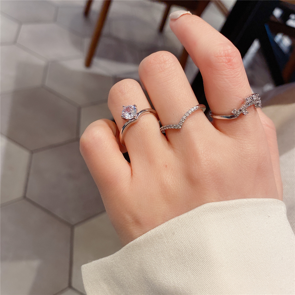 Color: Three-piece zircon ring
