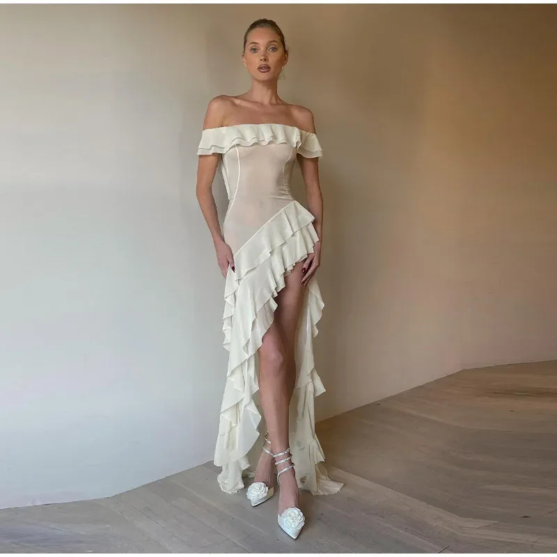Women's Pure Color Ruffles Dress