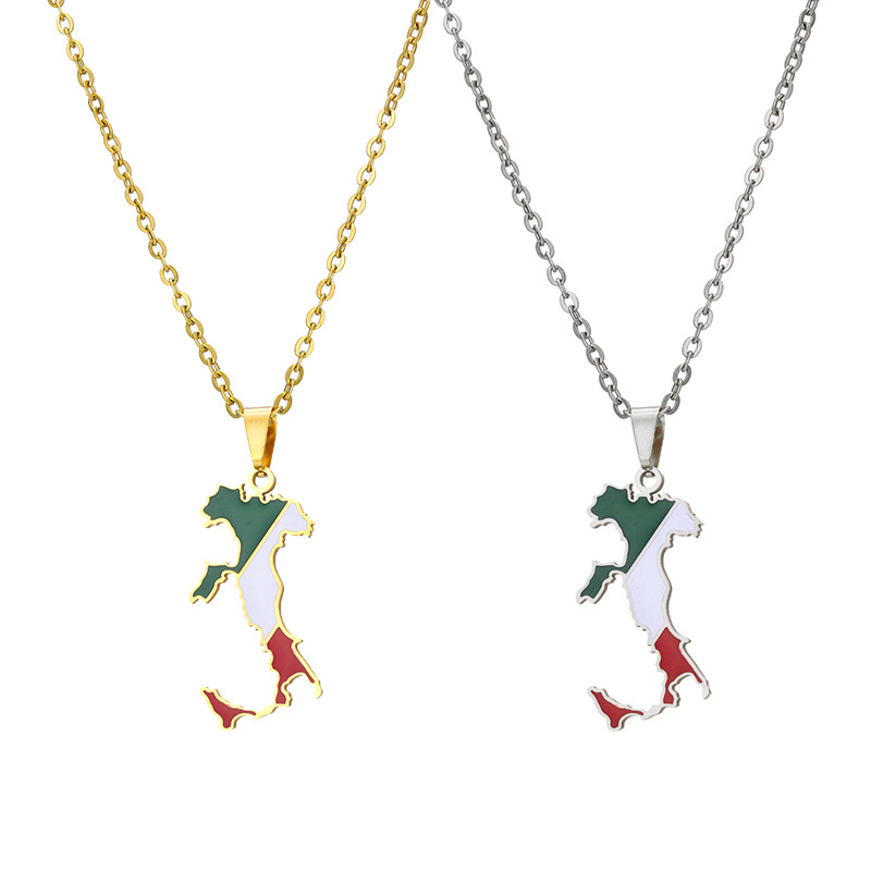 Style: ethnicMaterial: Stainless steelTreatment process: dripping oilType: necklaceShape: geometricColor: Gold Italy Map Necklace, Steel Italy Map Necklace