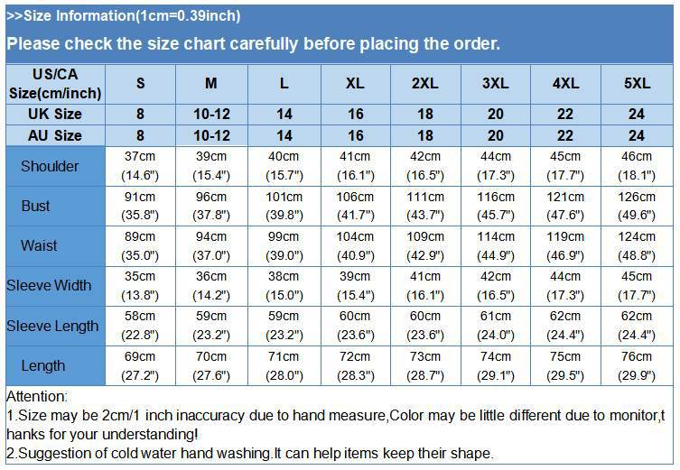 1. Asian sizes are 1 to 2 sizes smaller than European and American people. Choose the larger size if your size between two sizes. Please allow 2-3cm differences due to manual measurement. 2. Please check the size chart carefully before you buy the item, if you don't know how to choose size, please contact our customer service. 3.As you know, the different computers display colors differently, the color of the actual item may vary slightly from the following images.
