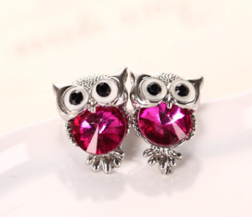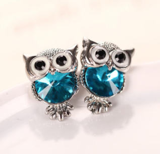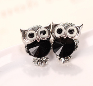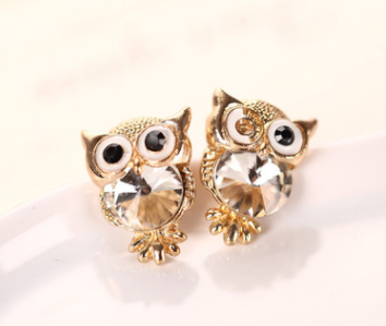 Korean version of the big-name jewelry earrings explosion crystal earrings personality owl crystal earrings crystal jewelry