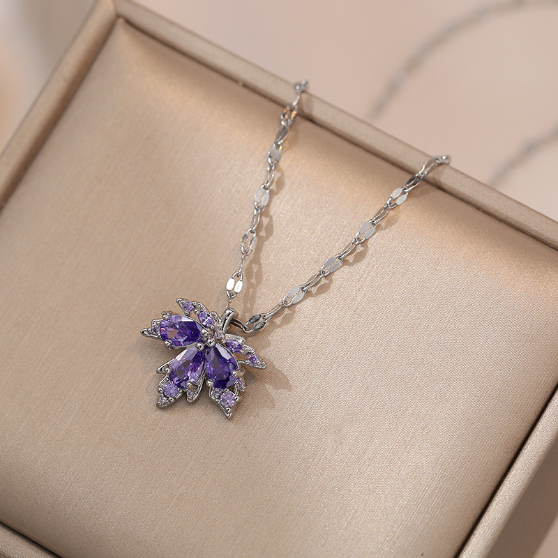 Product information:Treatment Process: Diamond Pendant material: mixed gem inlaid Chain style: lip chain Material: titanium steel Shape: Flower Popular elements: Leaves Style: fashion OL