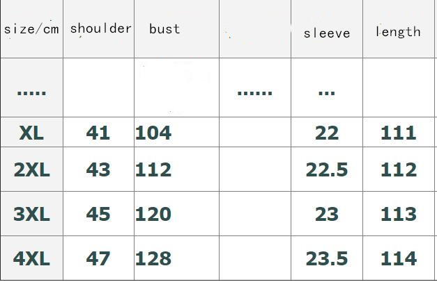 Size: XL (bust 104) 2XL (bust 112) 3XL (bust 120) 4XL (bust 128)