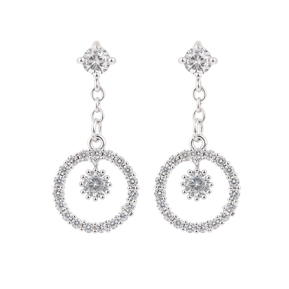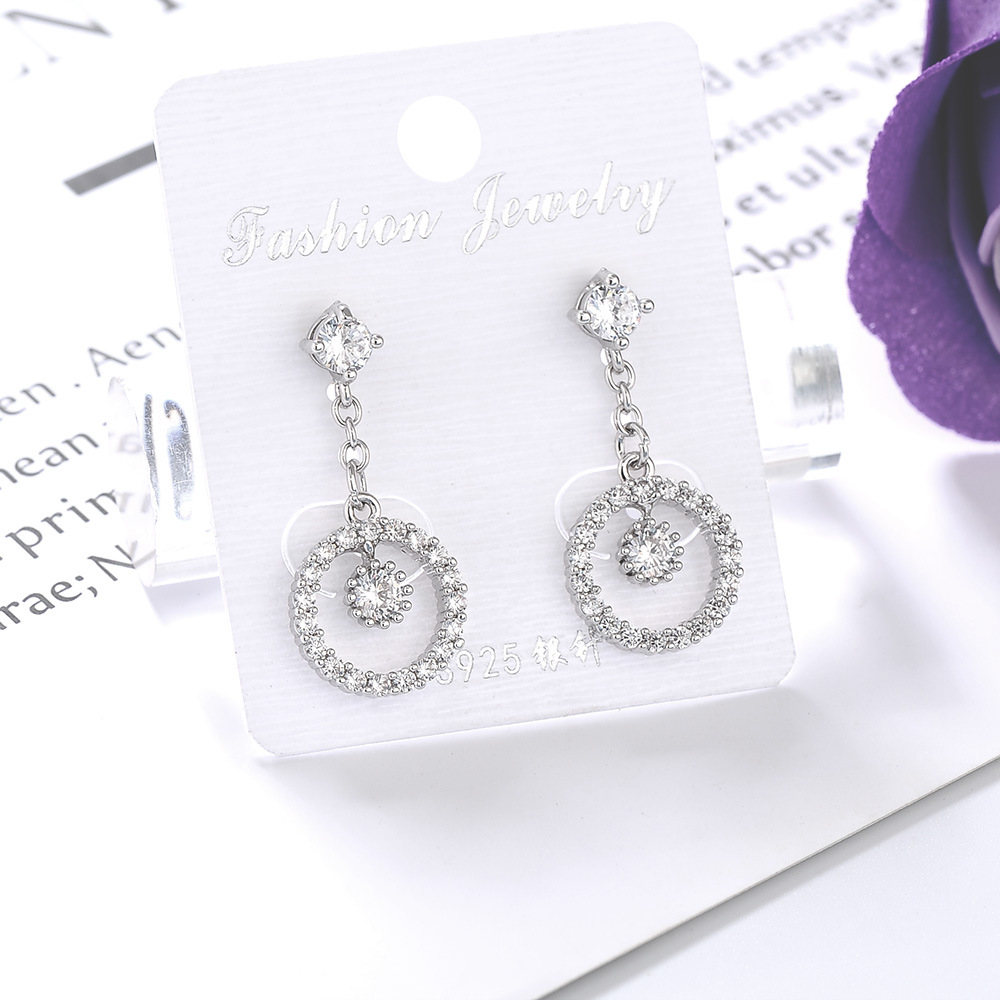 Korean drama touches the same heart earrings micro-set round copper inlaid zircon s925 silver ear needle Liu Renna with the ear studs