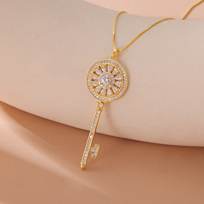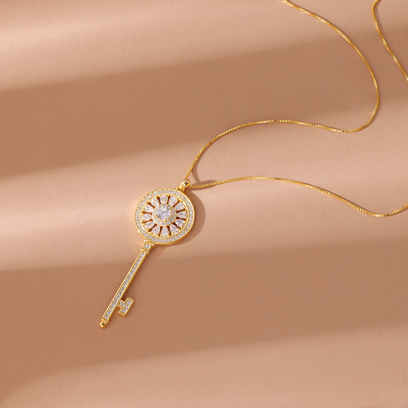 Product information:Color: Key diamond-studded necklacePendant material: 925 silverChain style: cross chainMaterial: SilverPopular element: KeyApplicable people: womenStyle: net red wind
