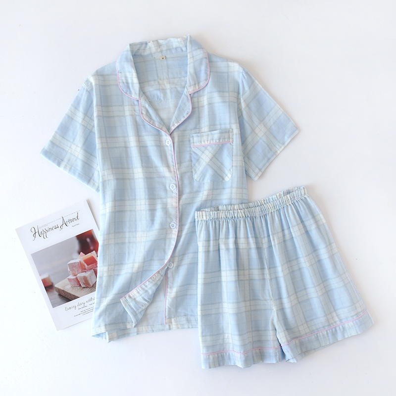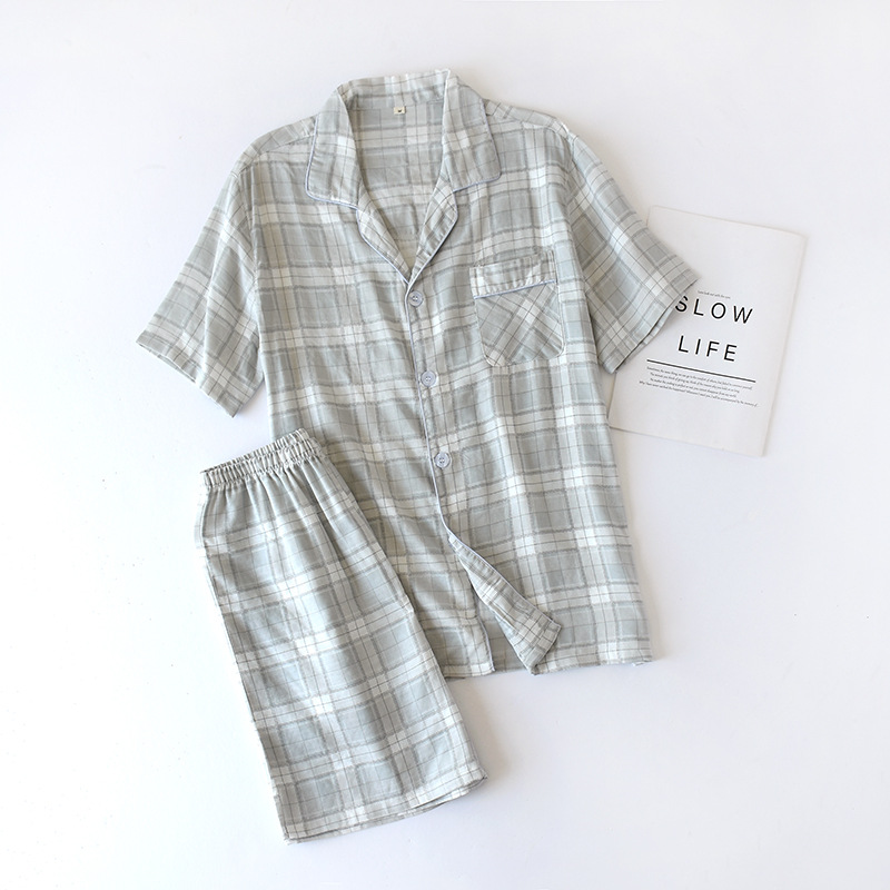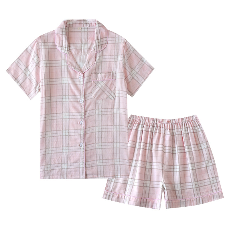 Color: gauze short men's gray plaid, gauze short women's pink plaid, gauze short women's blue plaid