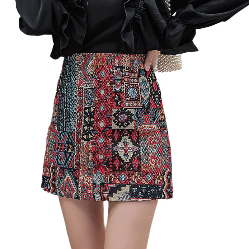 Packing: Retro ethnic style short A-line bag hip skirt x1