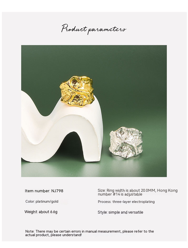 Product information:Type: Ring Treatment Process: Electroplating Color: platinum, gold Size: adjustable opening Style: Women's Material: Copper