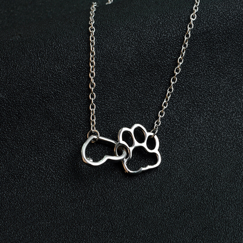 [product information][Name] :Dog paw love necklace[Color]: Cesium, silver[Material: Alloy[Packing]: In OPP bag, 12 pieces in a big bag[Size]: The chain length is about 45 + 5cm[Explanation]: Manual measurement, allowable error range soil 2
