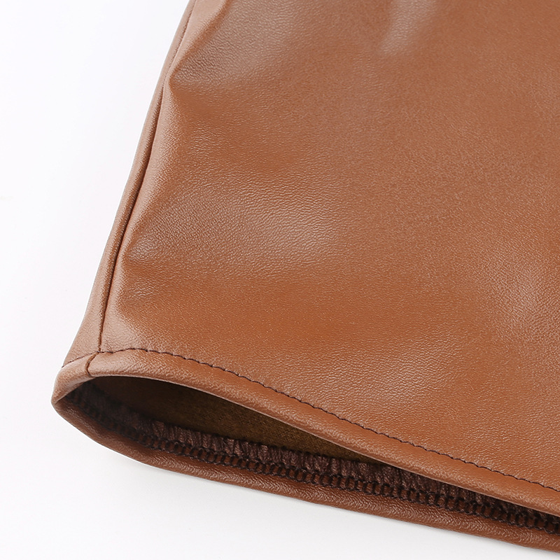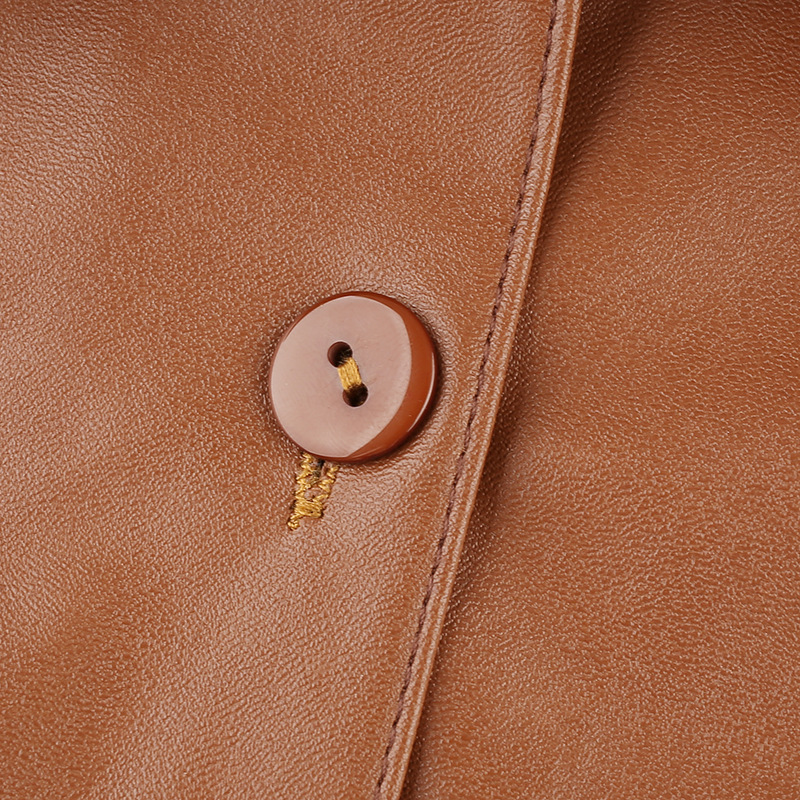 Long Puff Sleeve Turn Down Collar Women Leather Shirt