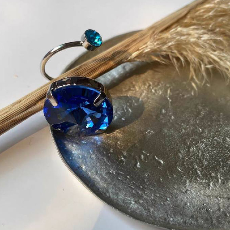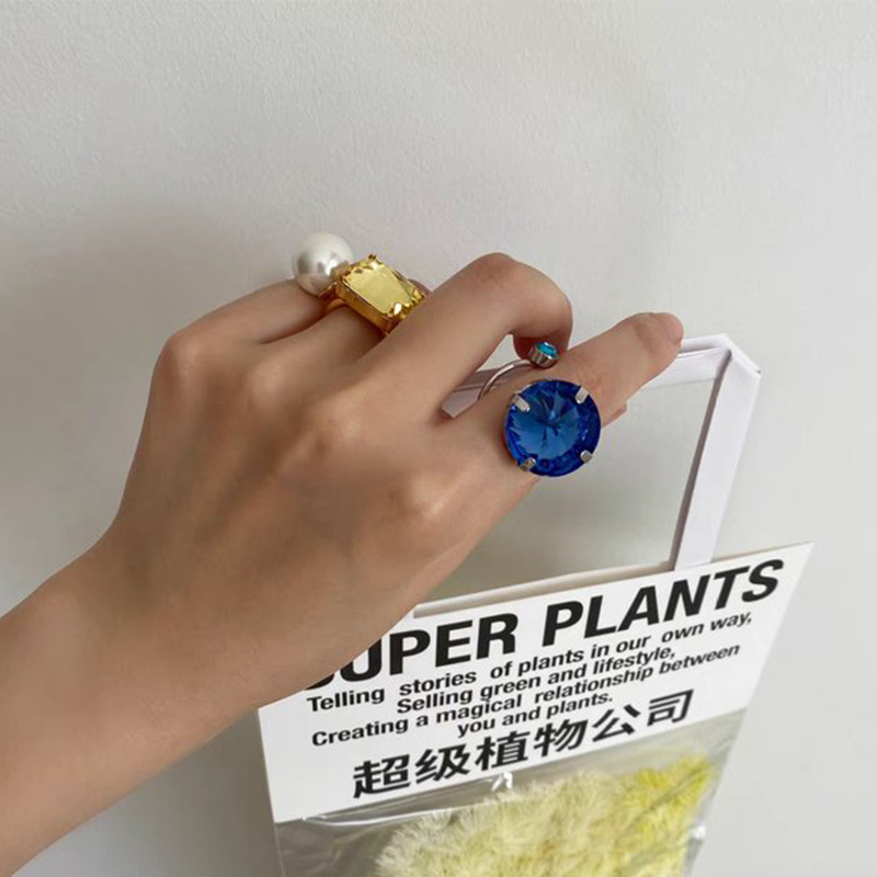 Material: brass gold-plated artificial rhinestoneSize: 7 size one size blue diamond diameter: about 1.8cm yellow diamond diameter: about 1.2cm