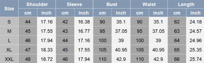 1. Asian sizes are 1 to 2 sizes smaller than European and American people. Choose the larger size if your size between two sizes. Please allow 2-3cm differences due to manual measurement.