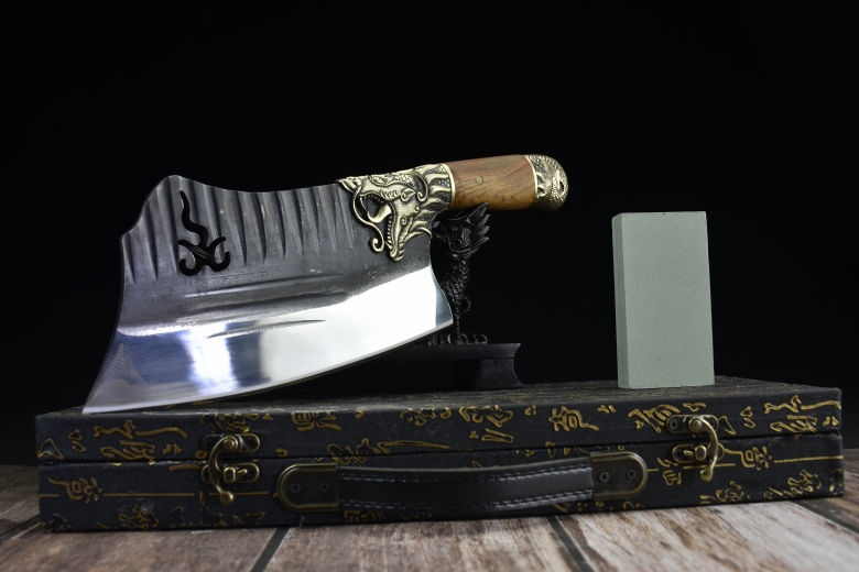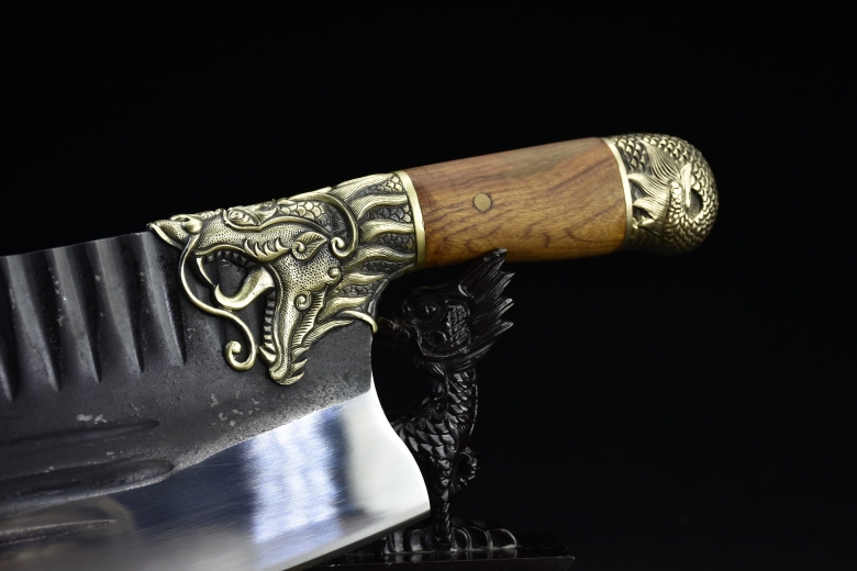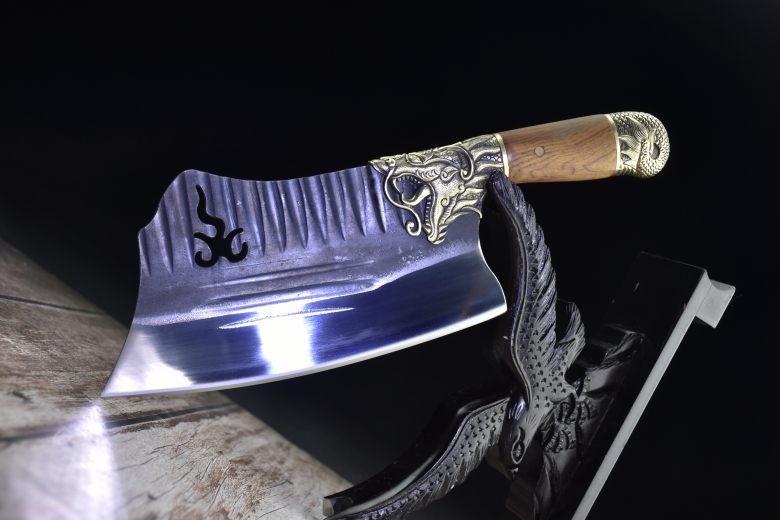Full length: 33.5cm Blade length: 22.3cmHandle length: 12cm Blade width: 11.8cmThickness: 0.5cm Blade material: spring steelHandle material: rosewood, fittings: brass